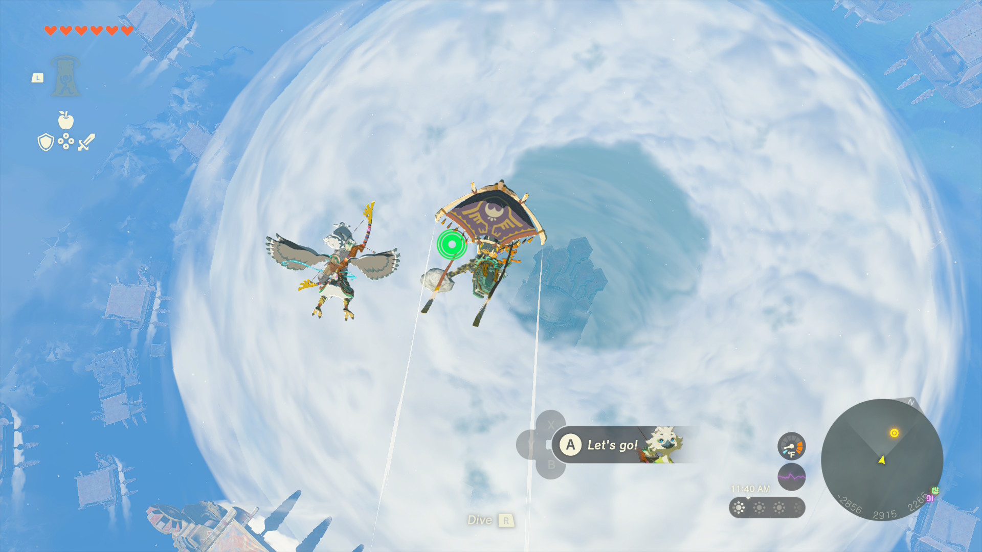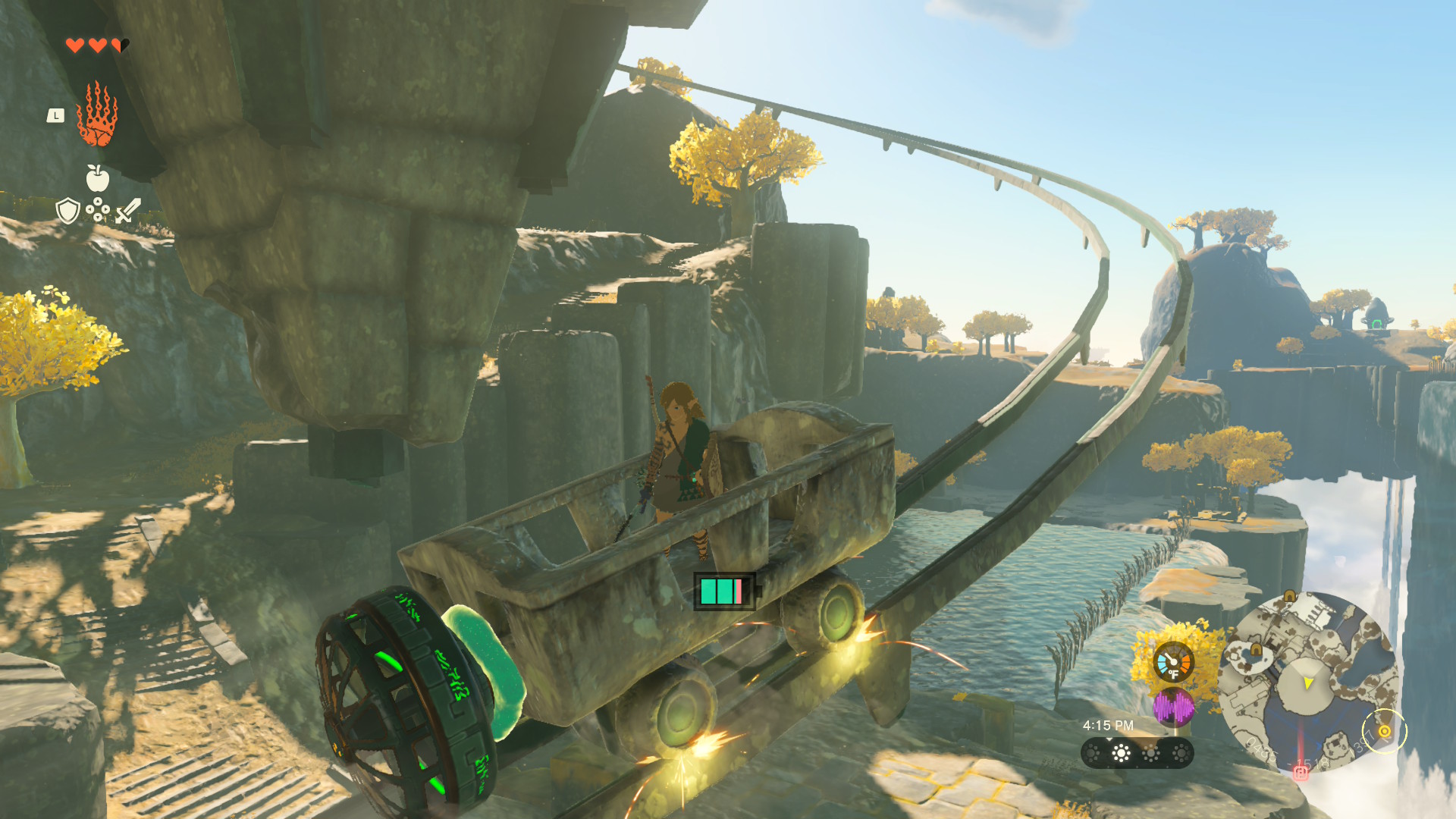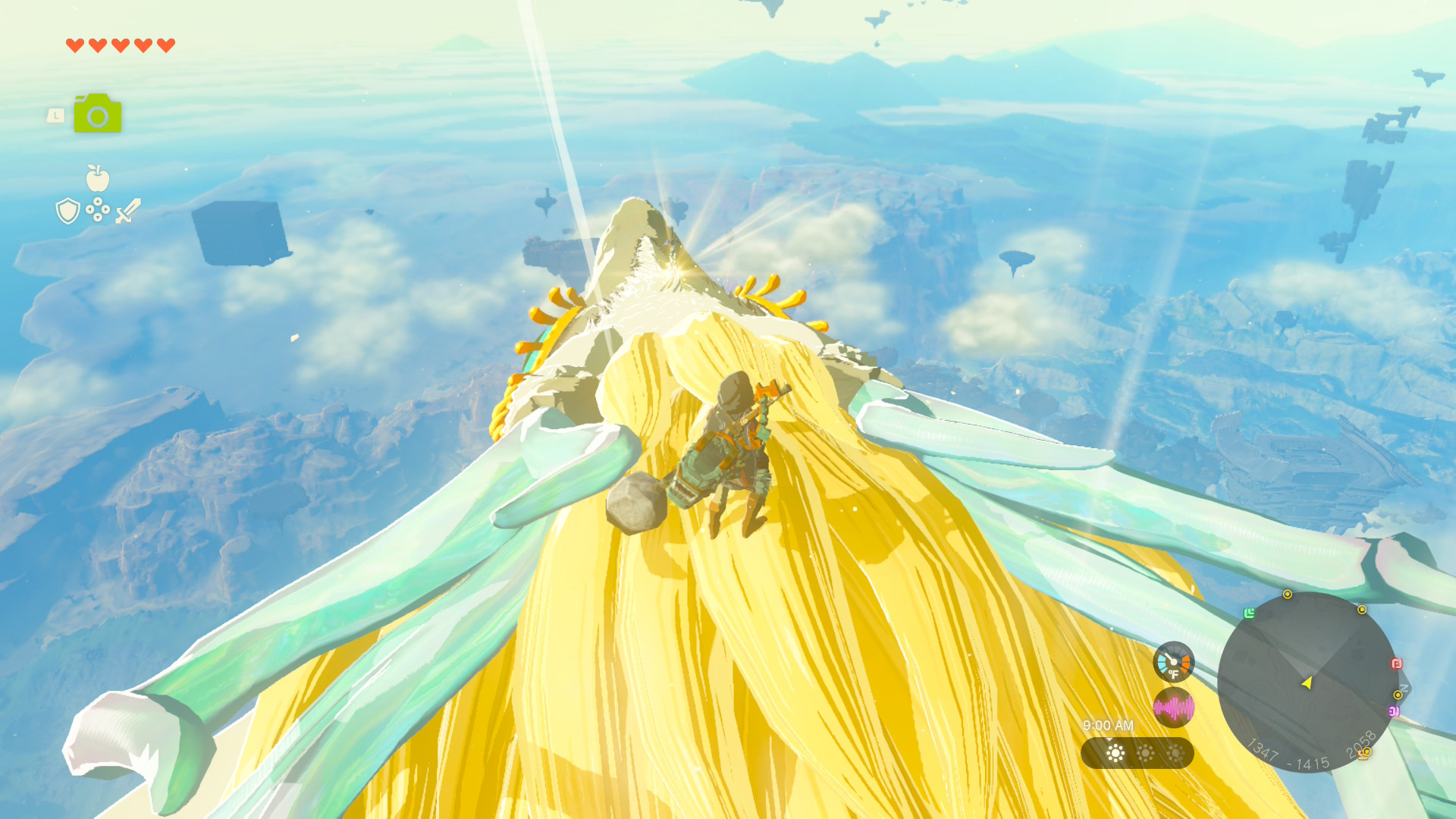 That said, in contrast to the amazing utility of Ultrahand, the other powers are kind of garbage - Ascend lets you tunnel through things, but ONLY if they're above you. The idea is obviously to give you an easy tool to warp out of the depths, or (in some situations) to let you fly through a tall column up towards the sky islands - but it has almost no utility outside of these purposes. I was constantly wondering if I'd get an option to go down, or to go in any direction, but that obviously never happened. Fuse is also kind of lame - it lets you "fuse" things to your weapons, arrows, and shields to bolster power and to add functionality, but that feels more like an inventory combine option than an actual power. Plus, Fused items generally look horrible - like something you'd find in GMod (pulling out this example again). Recall is yet another power with very limited and finnicky capabilities; it allows you to rewind time for specific objects (don't think this applies to anything living). The only uses I've found for it so far are for some puzzles, or to ride some falling rocks back up into the sky (where I find nothing on a tiny island); in most respects it's a strictly-worse version of Time Stop from BOTW. The other 4 slots on the wheel are taken up by a Camera, Autobuild (basically makes Ultrahand stuff for you), your Map, and the fucking Amiibo menu.