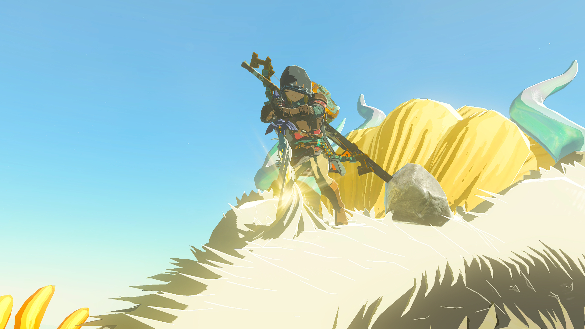 A big problem I have with these powers is that they don't really fluidly integrate themselves into normal gameplay. Ultrahand is kind of finnicky by design due to its customizability; you're not going to be making a flamethrower car when you're fighting a bunch of dudes, which isn't really a problem but does show off a difference in TOTK's overall design. Equipment Fusing is also only really done in preparation for combat, not really during it. Finally, Ascend and Recall (in the rare times you use them) are mostly to escape combat, but feel extremely clunky when you're trying to use them more in the heat of the moment. For example, Ascend forces you to look straight up and has a short delay before executing, so you can still get slapped by enemies. Everything feels like a once-in-a-while power; there's nothing like the bombs of BOTW (or even some of the other stuff - cryo was great for traversal) that really augment your toolkit all the time.